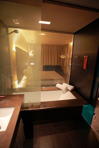 我們住的旅館B Hotel是我的忘年之交烏克蘭阿嬤同事推薦的,位在捷運站旁,房間大又摩登,浴室還有類似情趣旅館的電動窗簾設計。 重點是很便宜,我訂的時候有打折,一個晚上才八十美金, 真是謝謝Ellen阿嬤了。 又想到了個題外話,話說我渡假前一天在公司電梯跟一個不認識的中年男子同事哈拉說我要去法國度假, 他跟我說他去過法國幾次覺得很棒,接著就問我說我是不是背包客,我說不算吧, 他又繼續問我說是不是在法國都要住hostel ,我覺得挺奇怪的就回說我都訂Hotel耶, 我不敢住Hostel。 然後我實在是猜不透他問我這些要幹嘛,難道他想跟我分享他住過hostel的經驗嗎,所以就反問他住過Hostel嗎, 他回說他這輩子都沒住過Hostel@@ 我開車回家途中左思右想為什麼這位同事會覺得我是背包客要住Hostel, 難到他覺得我看起來很窮苦嗎? 回家一肚子氣就跟子揚報怨說我沒啥好衣服穿, 不熟的同事覺得我是背包客啦! 子揚趕緊回說沒啦, 是我看起來太年輕, 像十幾歲,所以人家以為Intern學生出去玩都住Hostel啦! 汪汪這次腦子動的快,躲過一場災難,哈哈。