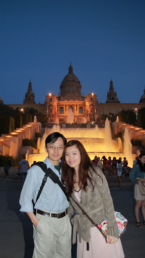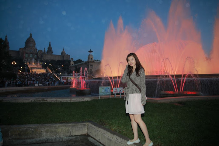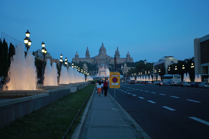哀,廢話一堆還沒寫到重點。到了旅館後, 旅館告知我們旅館旁的加泰隆尼亞美術館晚上有慶祝活動, 所以我們兩小歇一番後就散步前往去湊熱鬧了。 咱Ellen同事就是從B hotel散步去看美術館噴泉時老公皮夾被扒, 他老公機警立刻發現,跟歹徒搏鬥一番後, ㄧ群宵小抽出他的上百元現金後,把皮夾丟還給他們,結果好在只損失現金而已,因此Ellen鄭重僅告我出門別帶皮夾,所以我們倆在巴塞隆納每天身上就放的10元歐元而已,被扒就算了吧!