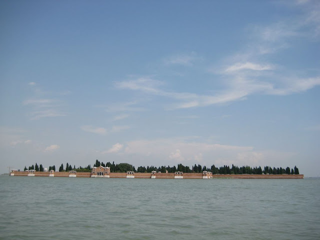 我們這次住在Lido島, 這長長的島是分隔本島與亞得里亞海的島嶼, 也是威尼斯唯一有公車和汽車的島, 島上海灘挺知名, 威尼斯影展會場也在島上。不過在Lido島上就像在一般的小島上,感受不到水都的特色,不是挺推薦的。 另外有一次我在船上看到一個小島整個被城牆給包圍住, 我直覺覺得應該是以前王室住的城堡,很想上去參觀, 後來回旅館查才知道整個島都是墓園,所以就打消念頭了。